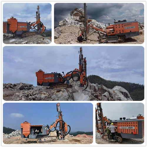 江蘇徐州某大型國有水泥廠,是公司的老用戶了,之前采購多臺分體鉆機,對使用效果很滿意。因擴產(chǎn)增能,今年9月份追加一臺452H一體鉆機用于礦山打孔爆破,設(shè)備調(diào)試正常使用后,掘進(jìn)速度為0.6米/min,油耗0.66L/m,速度快又省油,效果理想。